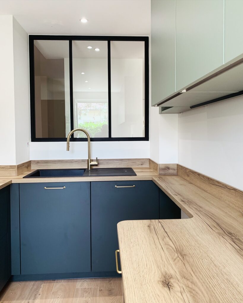 verrière de séparation cuisine-salon avec passe plat et porte coulissante associée
